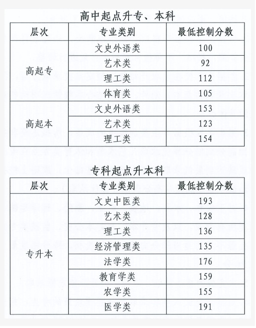 | 2025年北京市成人高校招生錄取最低控制分?jǐn)?shù)線 |
