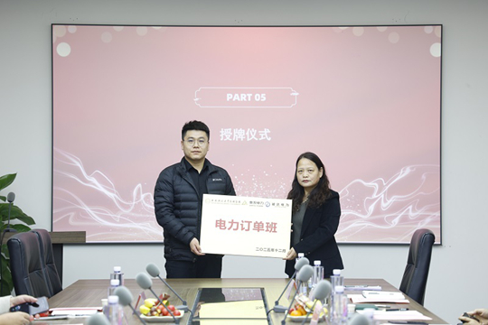 在與會嘉賓的共同見證下,校企雙方正式簽署訂單班合作協(xié)議及捐贈協(xié)議,并舉行授牌儀式。此舉標(biāo)志著校企協(xié)同育人的合作模式在西安科技大學(xué)高新學(xué)院正式落地,從前期溝通進入全面實施階段,“電力訂單班”這一共同建設(shè)成果也由此正式亮相。未來,雙方將在人才培養(yǎng)、技術(shù)交流、實訓(xùn)平臺建設(shè)等方面開展更為緊密的合作。