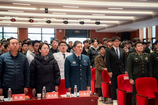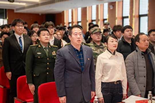 長(zhǎng)安區(qū)武裝部副部長(zhǎng)付離川,黃良街辦專武干事張俊,西安科技大學(xué)高新學(xué)院黨委書(shū)記劉琳,學(xué)院黨委工作部、黨委學(xué)生工作部、馬克思主義學(xué)院、保衛(wèi)與后勤保障處、學(xué)生處、就業(yè)與創(chuàng)業(yè)辦公室負(fù)責(zé)人,各二級(jí)學(xué)院負(fù)責(zé)人、輔導(dǎo)員代表,各學(xué)生組織代表,2025年退役復(fù)學(xué)學(xué)生、退役軍人志愿服務(wù)隊(duì)全體隊(duì)員及意向應(yīng)征學(xué)生代表齊聚現(xiàn)場(chǎng),共同參與本次大會(huì)。大會(huì)在莊嚴(yán)的國(guó)歌聲中正式拉開(kāi)帷幕。