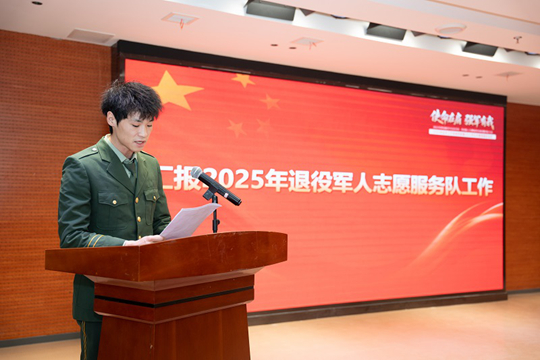 第二屆志愿服務(wù)隊(duì)負(fù)責(zé)人孫澤云發(fā)言,他總結(jié)了2025年退役軍人志愿服務(wù)隊(duì)工作,并梳理了服務(wù)隊(duì)過(guò)去一年圍繞核心主題策劃,并成功實(shí)施的多項(xiàng)志愿活動(dòng),如國(guó)防教育政策宣講、軍事技能訓(xùn)練、國(guó)防知識(shí)宣傳等,并表示今后退役軍人志愿服務(wù)隊(duì)將繼續(xù)努力,為退役大學(xué)生服務(wù)事業(yè)貢獻(xiàn)力量。