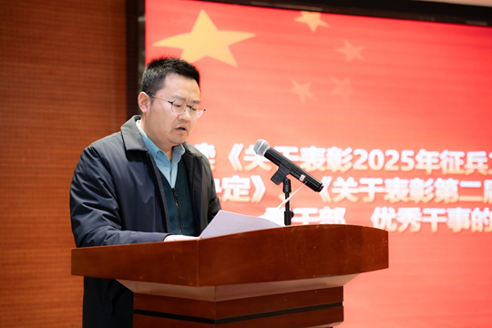 會(huì)上,學(xué)生處副處長(zhǎng)李樂(lè)文宣讀表彰決定,學(xué)院對(duì)2025年征兵工作先進(jìn)集體與個(gè)人、第二屆退役軍人志愿服務(wù)隊(duì)優(yōu)秀成員進(jìn)行表彰并頒發(fā)榮譽(yù)證書(shū),宣讀新一屆志愿服務(wù)隊(duì)學(xué)生干部聘任決定,同時(shí)為2025年退役復(fù)學(xué)學(xué)生送上紀(jì)念品。