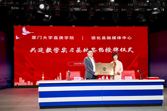 此次兩個實踐基地的建立,不僅為高?缥幕膰H傳播人才提供了實現(xiàn)創(chuàng)意的沃土,也為德化陶瓷產(chǎn)業(yè)的長遠(yuǎn)發(fā)展夯實了人才基礎(chǔ)。值得一提的是,德化縣廣播電視臺對德化縣融媒體中心與廈門大學(xué)嘉庚學(xué)院英語語言文化學(xué)院的合作進(jìn)行了報道。當(dāng)天的“德化新聞”報道指出,“(這)標(biāo)志著雙方在校媒合作、協(xié)同育人領(lǐng)域邁出實質(zhì)性一步,旨在整合資源優(yōu)勢,共同培養(yǎng)適應(yīng)新時代國際傳播需求的高素質(zhì)復(fù)合型人才!