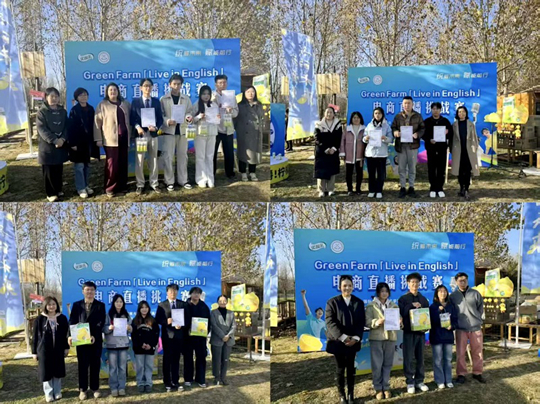 本次大賽評(píng)委團(tuán)由學(xué)院師生及企業(yè)嘉賓組成,從語言表達(dá)、直播技巧、產(chǎn)品呈現(xiàn)等維度進(jìn)行專業(yè)評(píng)審。經(jīng)過3小時(shí)的激烈角逐,最終評(píng)選出特等獎(jiǎng)1名、一等獎(jiǎng)2名、二等獎(jiǎng)3名、三等獎(jiǎng)4名。其中,劉軒里江團(tuán)隊(duì)以專業(yè)的英語表達(dá)、精湛的銷售技巧和新穎的直播內(nèi)容脫穎而出,斬獲特等獎(jiǎng)。馮嘉文、劉岳勤等老師及企業(yè)嘉賓為獲獎(jiǎng)隊(duì)伍頒發(fā)榮譽(yù)證書。