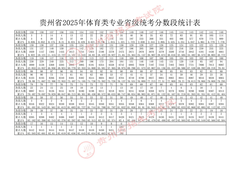根據(jù)《省教育廳關(guān)于做好貴州省2025年普通高等學(xué)校藝術(shù)、體育類專業(yè)考試招生工作的通知》(黔教發(fā)〔2024〕30號(hào))精神,貴州省2025年普通高校招生體育類專業(yè)省級(jí)統(tǒng)考錄取控制分?jǐn)?shù)線已劃定。
