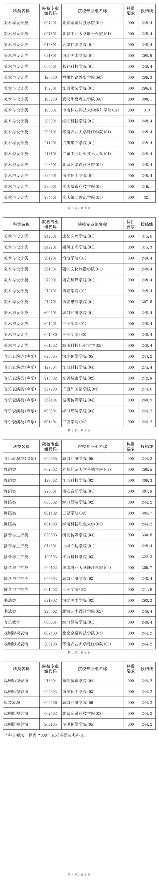 | 2025年海南省普通高校招生錄取本科提前批藝術(shù)類院校專業(yè)組征集志愿平行投檔線 |
