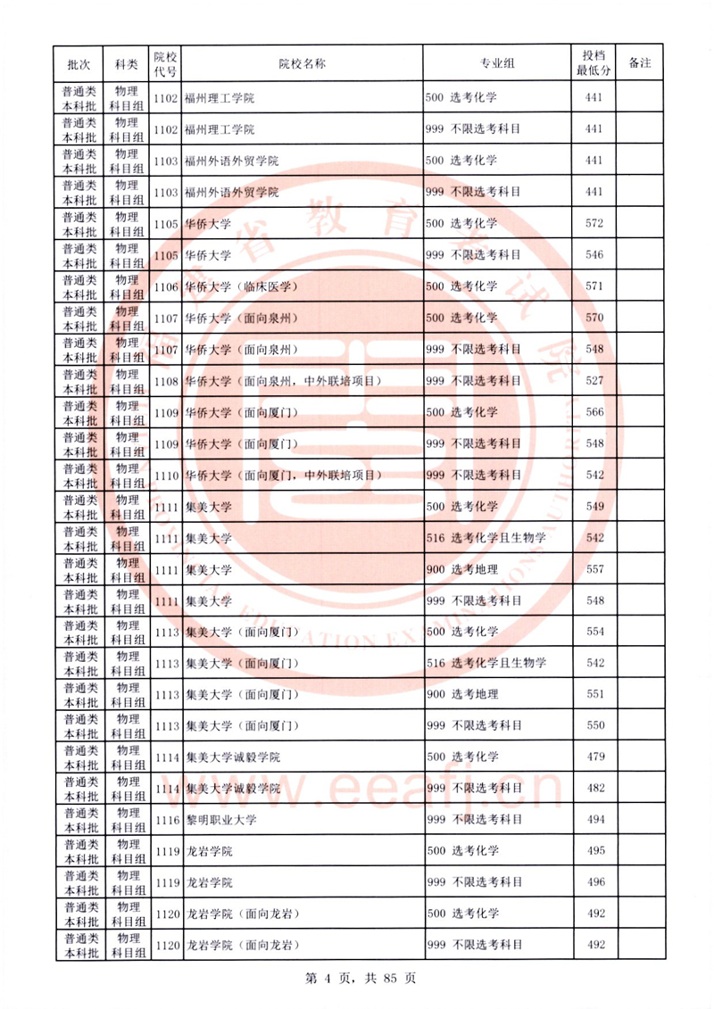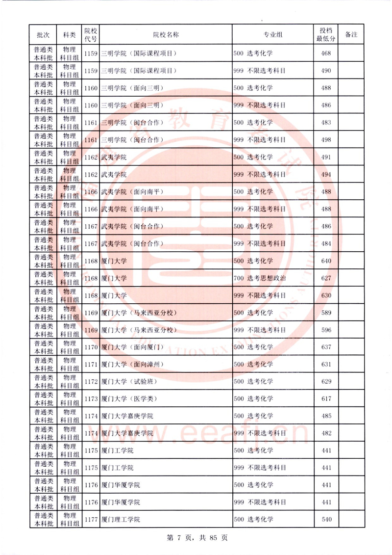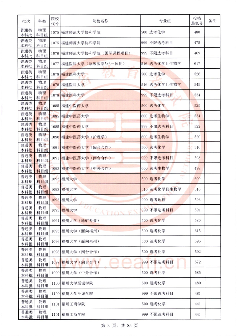 福建:2025年普通類本科批常規(guī)志愿院校專業(yè)組投檔最低分公布(物理科目組)