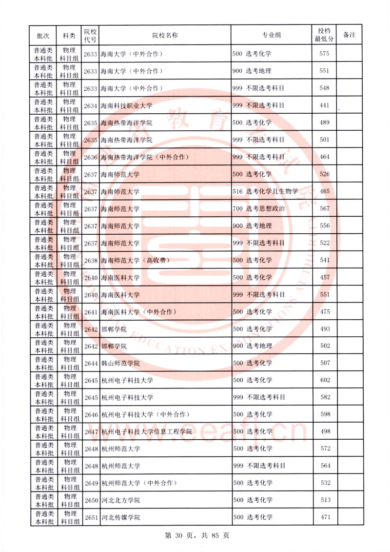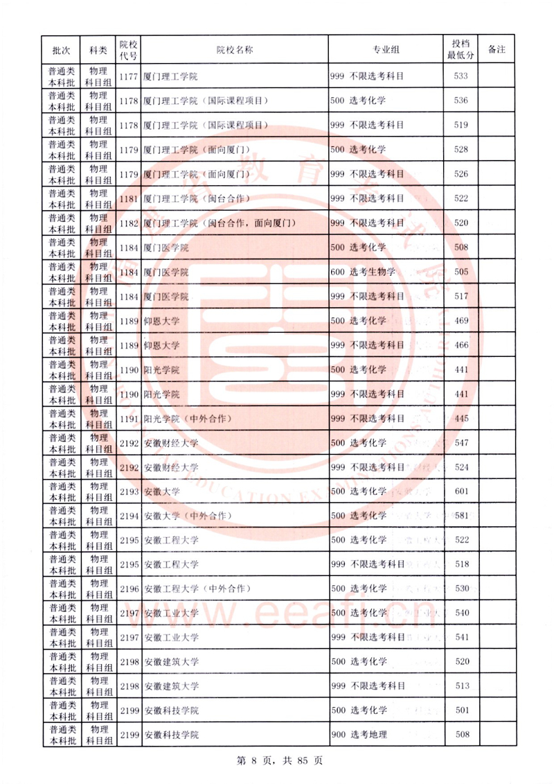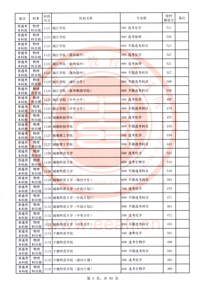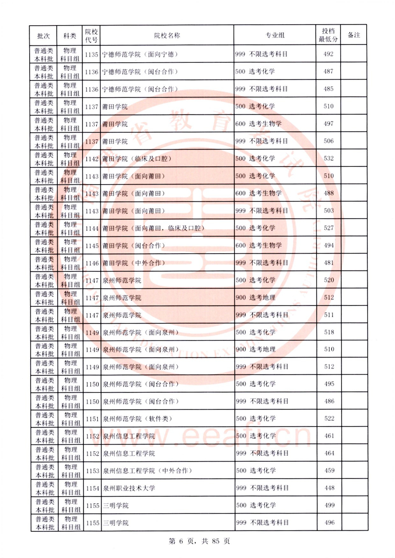 福建:2025年普通類本科批常規(guī)志愿院校專業(yè)組投檔最低分公布(物理科目組)
