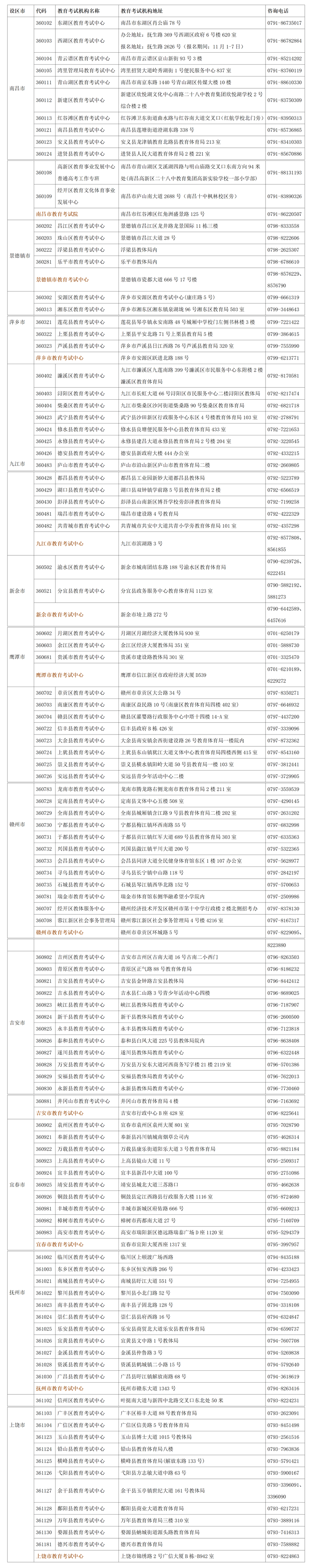 | 2026年江西省各市、縣(區(qū))教育考試機(jī)構(gòu)地址及普通高考咨詢電話 |