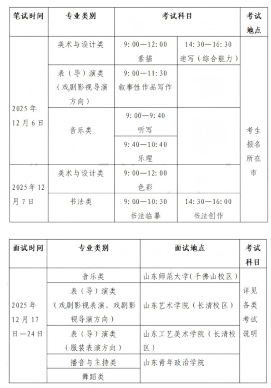 | 山東省2026年普通高等學(xué)校招生藝術(shù)類專業(yè)統(tǒng)一考試公告 |