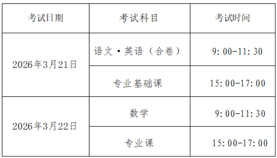 答:(1)中職類專業(yè)文化課考試科目及時(shí)間為: