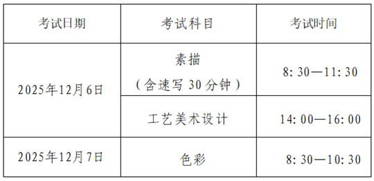 專業(yè)考試與普通高招美術(shù)與設(shè)計(jì)類專業(yè)省統(tǒng)考統(tǒng)一安排,考試時(shí)間安排如下:
