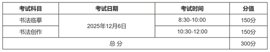 。5)書法創(chuàng)作科目,①以篆書完成命題創(chuàng)作(不提供篆書印刷體字樣);②以楷書、隸書、行書中的一種字體完成命題創(chuàng)作,試題文本30字左右。(考試字體要求在試題中明確,不提供繁體字。)