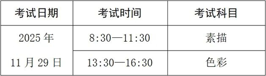 考生須帶身份證和準(zhǔn)考證參加所有項目考試。美術(shù)考試安排在每天上午7:30—9:00,遲到考生7:45后不得進(jìn)場考試,本項目作棄考處理;其他項目每天上午9:30開始,當(dāng)天所有項目必須在18:00前進(jìn)入候考區(qū)域,逾期作棄考處理。