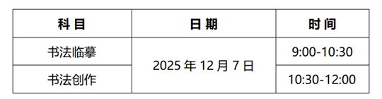 2026年河北省普通高校招生書法類專業(yè)統(tǒng)考將于2025年12月7日舉行,F(xiàn)將有關(guān)注意事項(xiàng)提示如下。