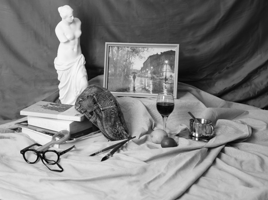 試題中選用的書本、水果、不銹鋼咖啡杯等不同形態(tài)的物體,其中既有自然形態(tài),又有設(shè)計(jì)形態(tài),能夠多層面考查學(xué)生運(yùn)用色彩塑造形體的能力;試題中靜物有硬朗的石膏、挺括的牛仔帽、柔軟的襯布等,能夠很好地考查學(xué)生運(yùn)用色彩工具對不同質(zhì)感物體的深入刻畫與表現(xiàn)能力;《米洛斯的阿芙洛狄忒》雕像是古典美術(shù)的典型代表,有著近乎完美的形態(tài)比例,在不同版本的高中美術(shù)教材中均有出現(xiàn),可以考查學(xué)生對教材的熟悉程度和應(yīng)有的藝術(shù)素養(yǎng),同時(shí)白色石膏像用色彩的方式來表現(xiàn),能有效考查學(xué)生色彩技法運(yùn)用能力及畫面的藝術(shù)表現(xiàn)力;帶框風(fēng)景畫放入畫面,在以靜物為主體的試題中加入了風(fēng)景元素,使畫面的整體節(jié)奏、色彩產(chǎn)生了更豐富的變化,可以進(jìn)一步考查學(xué)生對畫面的整體把控和組織能力。