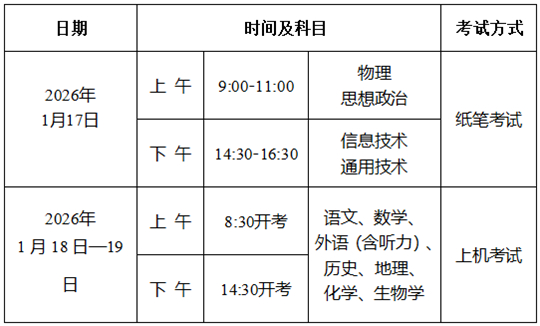 我市2025-2026學(xué)年度第一學(xué)期普通高中學(xué)業(yè)水平合格性考試將于2026年1月17日-19日進(jìn)行。現(xiàn)將考試及報(bào)名有關(guān)安排公告如下: