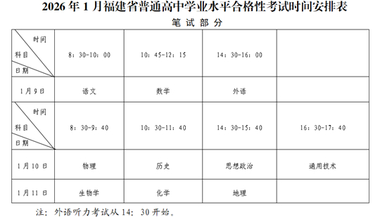 | 福建:關于2026年1月普通高中學業(yè)水平合格性考試報名工作的通告 |