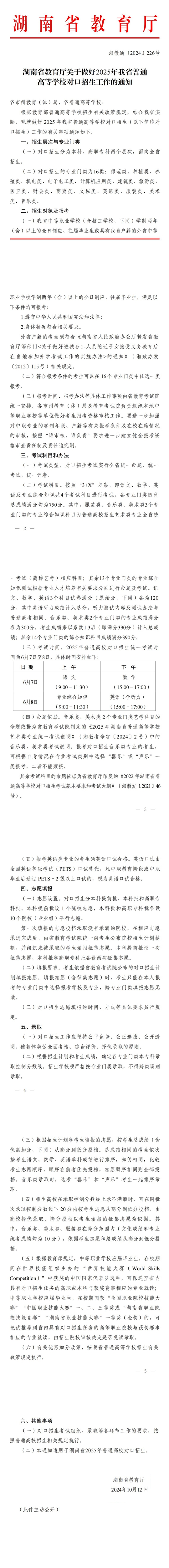 | 湖南省教育廳關(guān)于做好2025年我省普通高等學(xué)校對(duì)口招生工作的通知 |