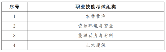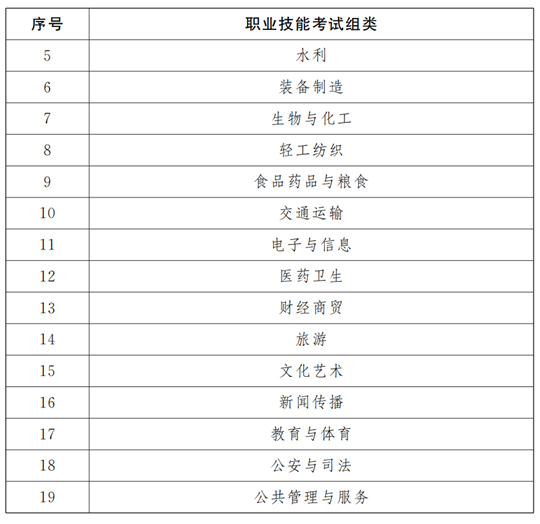 根據《職業(yè)教育專業(yè)目錄》,將職業(yè)技能考試劃分為19個組類,對應19個專業(yè)大類。