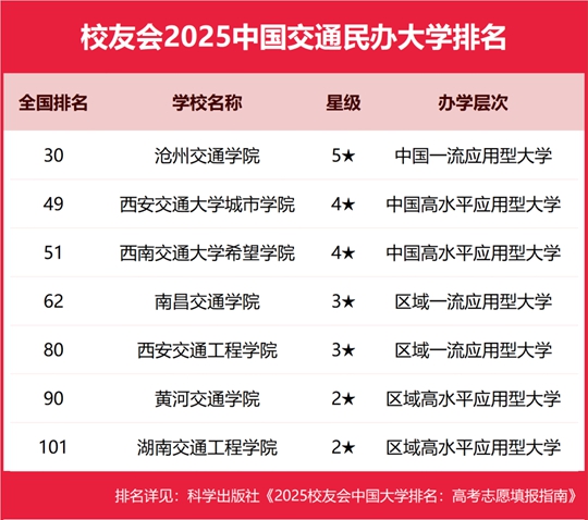 滄州交通學(xué)院位列2025中國交通民辦大學(xué)排名榜首,西安交通工程學(xué)院第五