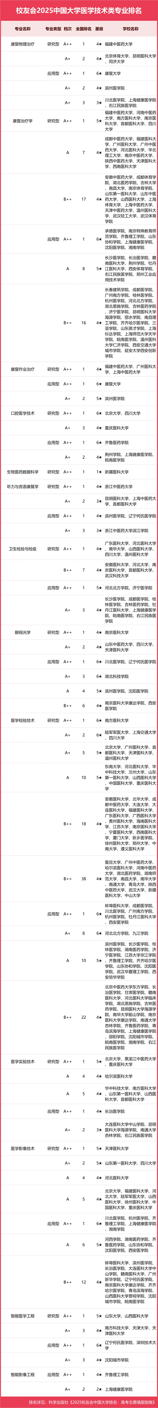 校友會(huì)2025中國(guó)大學(xué)醫(yī)學(xué)技術(shù)類專業(yè)排名(研究型)