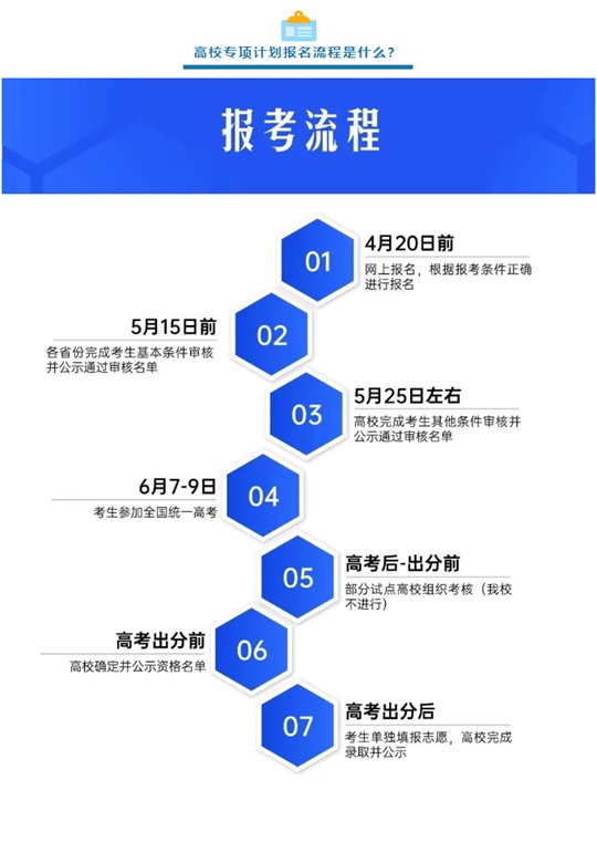 注意:往年被專項計劃錄取后放棄入學(xué)資格或退學(xué)的考生,不再具有專項計劃報考資格。
