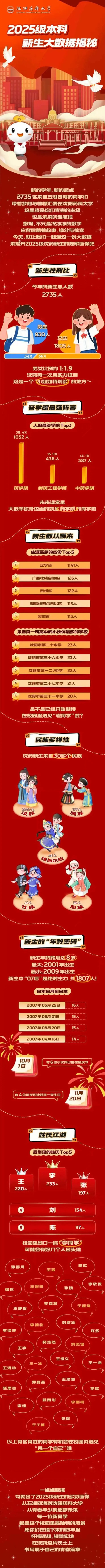 沈陽藥科大學2025級本科新生大數(shù)據(jù)揭秘