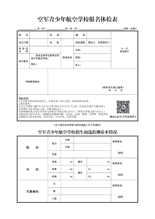 6.檢測計劃如有調(diào)整,以空軍招飛局成都選拔中心后續(xù)通知為準(zhǔn),聯(lián)系電話:028-85399171。