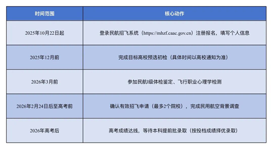 報考民航招飛的考生均須參加統(tǒng)一高考。高考報名、填報志愿、普通體檢與其他考生同步進(jìn)行。面試、體檢及背景調(diào)查合格的考生須填報高考志愿,在本科提前批普通類A段錄取。如果考生參加招飛未被錄取,不影響填報的其他院校、專業(yè)志愿的正常錄取。已被錄取考生不再參加所報其他志愿的錄取。