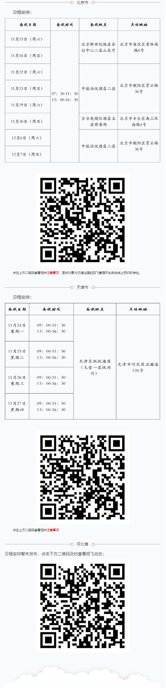 2026年,我校與中國國際航空公司在北京市、天津市、河北省開展校企合作招飛工作,預(yù)選初檢日程安排如下。