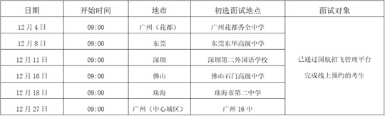 。ǘ╊A(yù)選初檢:登錄“國航招飛管理平臺(tái)”填寫信息、預(yù)約場次,已預(yù)約考生嚴(yán)格按照預(yù)約時(shí)間參加國航招飛辦公室組織的現(xiàn)場初檢面試(含飛行職業(yè)能力傾向測試、英語測試、面試等);