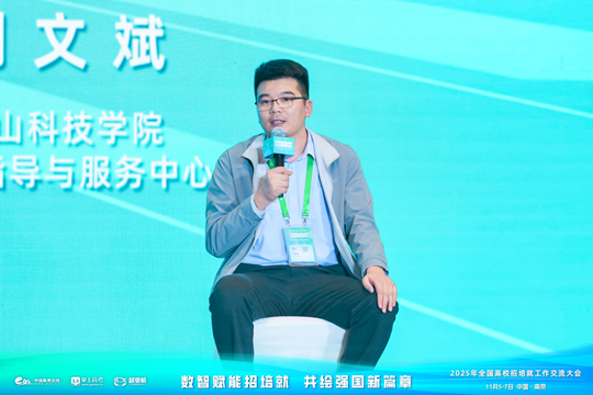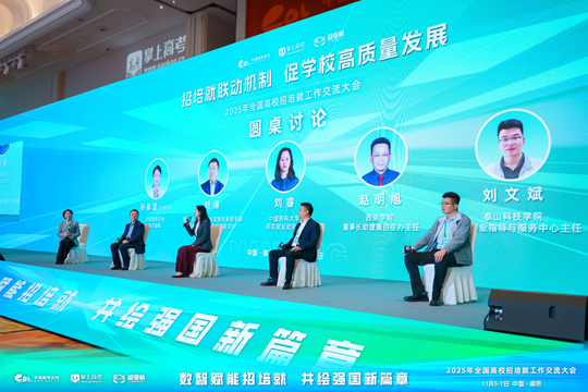 在題為“招培就聯(lián)動(dòng)機(jī)制,促學(xué)校高質(zhì)量發(fā)展”的圓桌論壇環(huán)節(jié),泰山科技學(xué)院就業(yè)創(chuàng)業(yè)指導(dǎo)與服務(wù)中心劉文斌作為學(xué)校代表應(yīng)邀出席并作主題發(fā)言。論壇聚焦于“招培就”聯(lián)動(dòng)機(jī)制的實(shí)踐路徑、高校應(yīng)對(duì)“慢就業(yè)”現(xiàn)象的有效舉措等核心議題,與會(huì)嘉賓分享了各校的探索經(jīng)驗(yàn)與思考。
