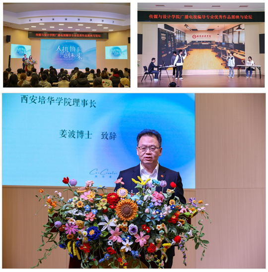 11月7日,西安培華學(xué)院傳媒與設(shè)計(jì)學(xué)院廣播電視編導(dǎo)專(zhuān)業(yè)“Co-Creator”主題學(xué)生作品展映與論壇活動(dòng)在明德樓報(bào)告廳圓滿(mǎn)落幕。本次活動(dòng)以 “人機(jī)協(xié)同” 為核心,匯聚行業(yè)大咖、高校同仁與優(yōu)秀校友,通過(guò)作品展映、嘉賓論壇、AI 互動(dòng)等多元形式,搭建了一場(chǎng)技術(shù)與藝術(shù)碰撞、傳承與創(chuàng)新共生的專(zhuān)業(yè)盛宴,為影視教育與創(chuàng)作實(shí)踐探索新路徑。