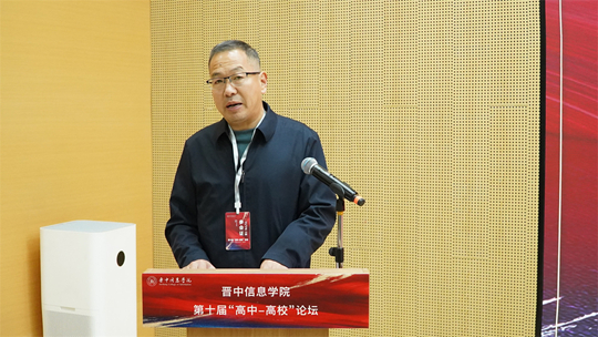 學(xué)校黨委書記張存?zhèn)ナ紫葘Ω魑坏厥薪逃诸I(lǐng)導(dǎo)及高職、高中校長的到來表示熱烈歡迎與衷心感謝。他指出,本屆論壇以“新高考,新機(jī)遇;晉學(xué)子,晉未來”為主題,旨在共同應(yīng)對新高考改革帶來的機(jī)遇與挑戰(zhàn),共繪育人藍(lán)圖。他重點(diǎn)闡述了學(xué)校以“四位一體雙院制”的人才培養(yǎng)模式,并強(qiáng)調(diào)學(xué)校緊密對接山西產(chǎn)業(yè)發(fā)展需求,構(gòu)建了以信息科技為特色的學(xué)科專業(yè)體系,并在專業(yè)認(rèn)證、一流課程建設(shè)及學(xué)生競賽、就業(yè)等方面取得了顯著成效,辦學(xué)實力與社會聲譽(yù)穩(wěn)步提升。張書記表示,學(xué)校的持續(xù)發(fā)展離不開廣大高中、高校的鼎力支持,期待未來能進(jìn)一步深化合作,實現(xiàn)協(xié)同育人,并預(yù)祝本屆論壇取得圓滿成功。