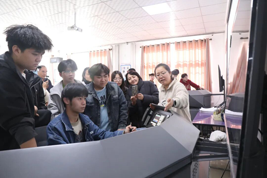 阿爾瑪古爾·卡納加托娃博士仔細(xì)聆聽了講解,對學(xué)校將工匠精神培養(yǎng)與思想政治教育相結(jié)合的模式表示濃厚興趣。