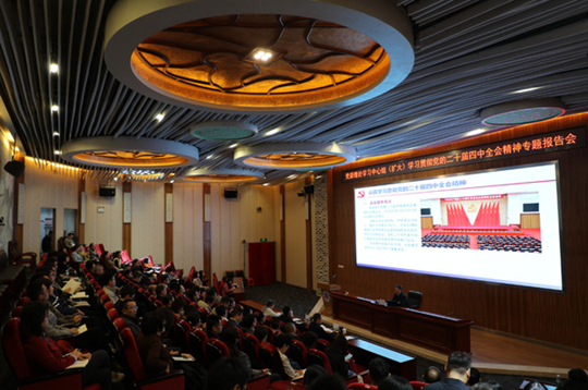 與會(huì)人員認(rèn)真聆聽,提筆記錄。大家一致認(rèn)為杜書記的宣講從全會(huì)提出的重大戰(zhàn)略部署,到教育領(lǐng)域改革發(fā)展的新要求,緊密結(jié)合學(xué)校發(fā)展實(shí)際,主題鮮明、脈絡(luò)清晰,內(nèi)涵豐富、重點(diǎn)突出,既有理論高度,又有實(shí)踐深度,對(duì)黨的二十屆四中全會(huì)精神有了全面、深刻的理解,進(jìn)一步明確了未來工作的方向,今后將以更加飽滿的熱情、更加昂揚(yáng)的斗志、更加務(wù)實(shí)的作風(fēng),攻堅(jiān)克難,銳意進(jìn)取,奮力譜寫學(xué)校高質(zhì)量發(fā)展新篇章。(記者 許晗星)