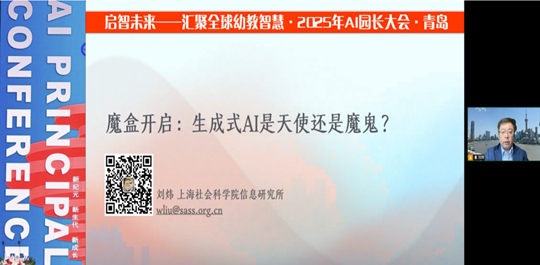 “生成式AI是天使還是魔鬼?”圍繞這一備受關(guān)注的問題,上海社會(huì)科學(xué)院信息研究所所長劉煒在線上報(bào)告中詳細(xì)闡述了AI發(fā)展現(xiàn)狀、大模型優(yōu)勢(shì)與演進(jìn)路徑,指出AI對(duì)教育的影響尤為深刻,大模型時(shí)代學(xué)校更需要引導(dǎo)學(xué)生與大模型共生共存以獲得人生意義。他結(jié)合政策分析AI在學(xué)前教育的應(yīng)用價(jià)值,點(diǎn)明數(shù)據(jù)隱私、算法偏見等風(fēng)險(xiǎn),強(qiáng)調(diào)AI不可替代教師,呼吁幼兒園以技術(shù)與師資雙輪驅(qū)動(dòng),建AI友好的幼教環(huán)境,實(shí)現(xiàn)“智啟童真未來”。