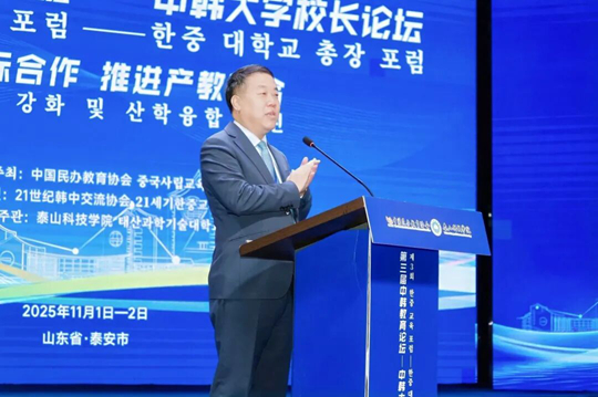 11月1日,在教育部的指導(dǎo)支持下,由中國民辦教育協(xié)會(huì)主辦、21世紀(jì)韓中交流協(xié)會(huì)協(xié)辦、泰山科技學(xué)院承辦的第三屆中韓教育論壇——中韓大學(xué)校長論壇在山東泰安隆重開幕。
