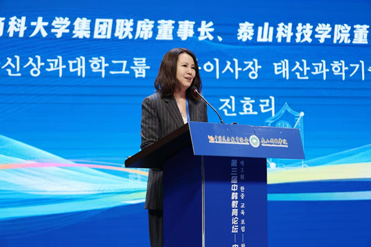 中國新商科大學(xué)集團聯(lián)席董事長、泰山科技學(xué)院董事長陳曉莉在致辭中表示,學(xué)校始終重視國際教育交流合作,此次承辦論壇既是對學(xué)校辦學(xué)理念的認可,更是推動學(xué)校與中韓高校深度對接的契機。未來,學(xué)校將以中外合作辦學(xué)為橋梁,深度鏈接中韓教育與產(chǎn)業(yè)資源,培養(yǎng)具備國際視野的高素質(zhì)應(yīng)用型人才,為中韓教育交流合作貢獻力量。