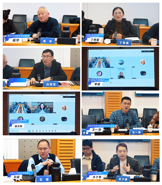 在專題報(bào)告與討論環(huán)節(jié),多位專家發(fā)表了精彩演講。浙江大學(xué)教育學(xué)院吳華教授,中國(guó)民辦教育協(xié)會(huì)副秘書(shū)長(zhǎng)、北京教科院副研究員丁秀棠,鄭州科技學(xué)院黨委委員、副校長(zhǎng)劉亮軍教授,《國(guó)家教育行政學(xué)院學(xué)報(bào)》副主編、國(guó)家教育行政學(xué)院李虔副研究員,浙江越秀外國(guó)語(yǔ)學(xué)院民教所所長(zhǎng)施文妹教授,蘇州大學(xué)民辦教育研究中心主任、博士生導(dǎo)師王一濤教授,山東女子學(xué)院科研處副處長(zhǎng)石猛教授,蘇州大學(xué)商學(xué)院副教授蘇子豪等領(lǐng)導(dǎo)專家通過(guò)線上線下圍繞未來(lái)民辦教育的高質(zhì)量發(fā)展提出了一系列高屋建瓴的觀點(diǎn)。