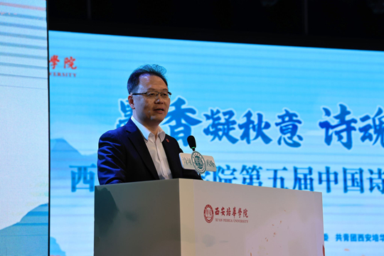 為傳承中華優(yōu)秀傳統(tǒng)文化,以千年文脈涵養(yǎng)學(xué)子精神風(fēng)貌,12月1日,西安培華學(xué)院第五屆中國(guó)詩(shī)詞大會(huì)總決賽在大學(xué)生活動(dòng)中心啟幕。陜西省詩(shī)詞學(xué)會(huì)會(huì)長(zhǎng)劉煒評(píng),何家營(yíng)鼓樂(lè)社社長(zhǎng)鄭亞福,西安培華學(xué)院理事長(zhǎng)姜波,黨委書(shū)記劉鋒,常務(wù)副校長(zhǎng)、語(yǔ)言工作委員會(huì)主任胡俊生,文學(xué)院院長(zhǎng)亢世勇等師生代表集聚一堂,共赴詩(shī)意盛宴。本次大賽由漢語(yǔ)言文學(xué)專(zhuān)業(yè)行業(yè)導(dǎo)師仵埂、學(xué)院督導(dǎo)組組長(zhǎng)趙維森、漢語(yǔ)言文學(xué)專(zhuān)業(yè)帶頭人傅紹良、學(xué)院創(chuàng)新研究中心喬芳、學(xué)院院長(zhǎng)助理張萍擔(dān)任評(píng)委。