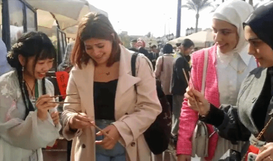 最讓她自豪的,是輔導(dǎo)學(xué)生參加埃及大學(xué)生中文小品比賽、備戰(zhàn)埃及賽區(qū)漢語橋比賽的那些日夜。從專業(yè)知識(shí)到中華才藝,從漢語演講到文化理解,她與學(xué)生一起打磨每一個(gè)細(xì)節(jié)。當(dāng)學(xué)生最終捧回獎(jiǎng)項(xiàng)時(shí),那份喜悅跨越了語言和國(guó)界!拔覀児餐冻龅呐,讓學(xué)生看到了更廣闊的世界,也讓我感受到了作為國(guó)際中文教師最珍貴的價(jià)值——被需要!