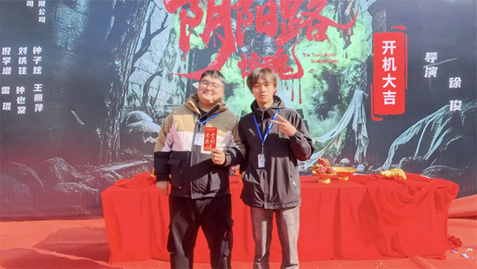 近日,晉中信息學(xué)院電影商務(wù)產(chǎn)業(yè)學(xué)院與萬畫影業(yè)聯(lián)合開展的“帶你拍電影”產(chǎn)教融合實(shí)踐項(xiàng)目正式啟動(dòng)。經(jīng)報(bào)名與選拔,電影商務(wù)產(chǎn)業(yè)學(xué)院第四期實(shí)訓(xùn)班學(xué)員李樹杰、韓爍兩位同學(xué)脫穎而出,前往浙江省東陽市的橫店影視城,參與院線驚悚懸疑電影《陰陽路驚魂》的攝制工作。本片由青年導(dǎo)演徐俊執(zhí)導(dǎo),何雨宸主演,定檔2026年8月19日全國上映。本次實(shí)踐不僅是一次專業(yè)教學(xué)與產(chǎn)業(yè)實(shí)景的深度融合,也成為學(xué)生走出課堂、觸摸真實(shí)影視工業(yè)的重要契機(jī)。