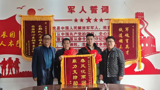 家長代表懷著感恩之心,將一面繡有“春風化雨潤學子,鼎力支持助從軍”的錦旗贈送給學校。錦旗上的鎏金字跡,在燈光下格外耀眼,它不僅是家長對學校的致謝,更是對學校“厚植國防教育、助力學子參軍”理念的高度認可,讓整場儀式充滿了家校同心、共筑國防的溫暖力量。
