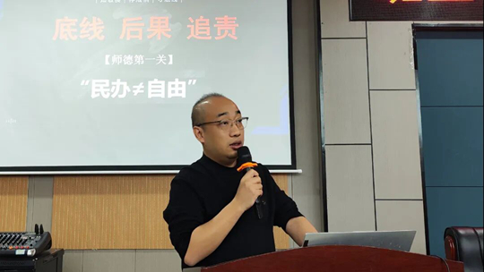 “為師者,先正觀念!睂W(xué)工處處長鞏非以“師德三觀”開場,用“民辦≠自由”當(dāng)頭棒喝,警示法治意識是班主任的“生存底線”。