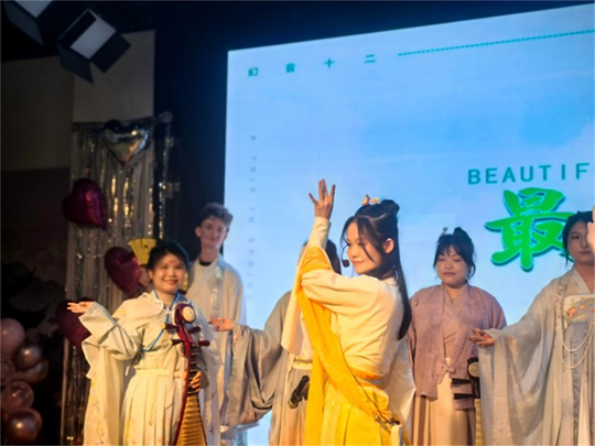 12月5日,晉中信息學(xué)院太古科幻學(xué)院2026新年酒會(huì)現(xiàn)場(chǎng)流光溢彩,一場(chǎng)融合傳統(tǒng)與未來(lái)的文化盛宴在此上演。國(guó)際交流學(xué)院的留學(xué)生們攜琵琶登臺(tái),以一曲穿越千年的旋律,在科幻主題的時(shí)空敘事中點(diǎn)亮中華文化符號(hào),讓在場(chǎng)嘉賓感受傳統(tǒng)藝術(shù)與現(xiàn)代創(chuàng)意的碰撞共鳴。