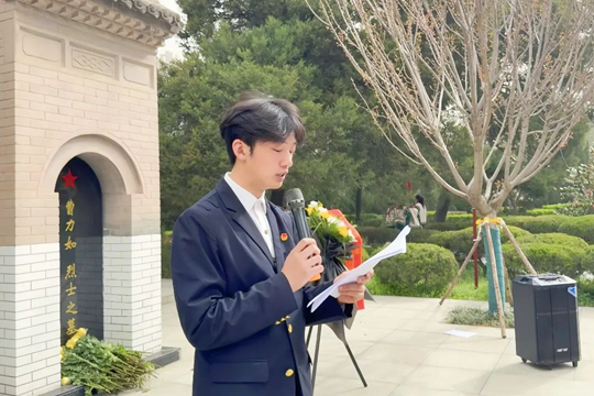 校團(tuán)委學(xué)生助理、校學(xué)生會(huì)主席王璽哲作為學(xué)生代表進(jìn)行表態(tài)發(fā)言:“我們要銘記先烈們的奉獻(xiàn)和犧牲,將紅色精神傳承下去,努力學(xué)習(xí),為實(shí)現(xiàn)中華民族偉大復(fù)興而不懈奮斗!