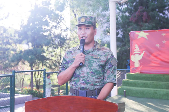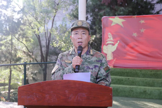 優(yōu)秀教官代表羅軍向全體新生送上“紀(jì)律、吃苦、團(tuán)隊(duì)”三把鑰匙,寄語同學(xué)們“把操場(chǎng)上的腳印,變成鐵軌上的里程”。