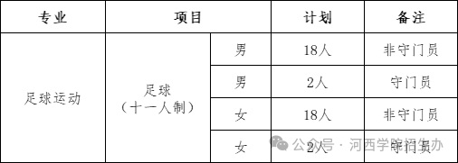 4.足球(非守門員)、足球(守門員)項(xiàng)目分性別按計(jì)劃分別錄取。