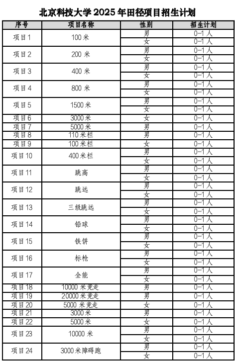 附件1:2025年田徑項(xiàng)目招生計(jì)劃